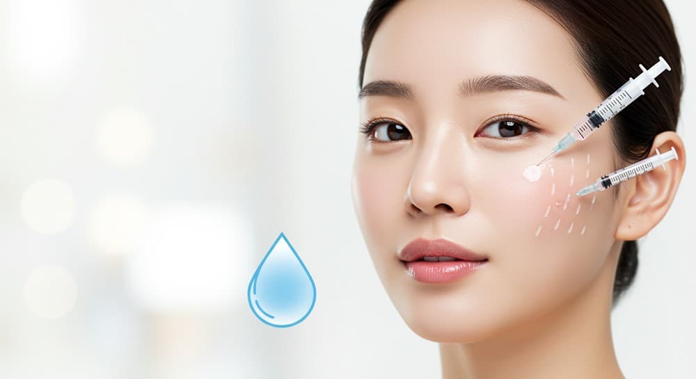 히알루론산은 물을 끌어당기는 성질로 수분·광택·탄력을 끌어올려요. 미세 주입(마이크로드로플릿) 방식으로 진피에 고르게 퍼뜨려 “피부가 촉촉해 보이는 느낌”을 주죠. “볼륨필러”와 달리 형태를 세우지 않고 ‘피부 상태’를 개선해요.